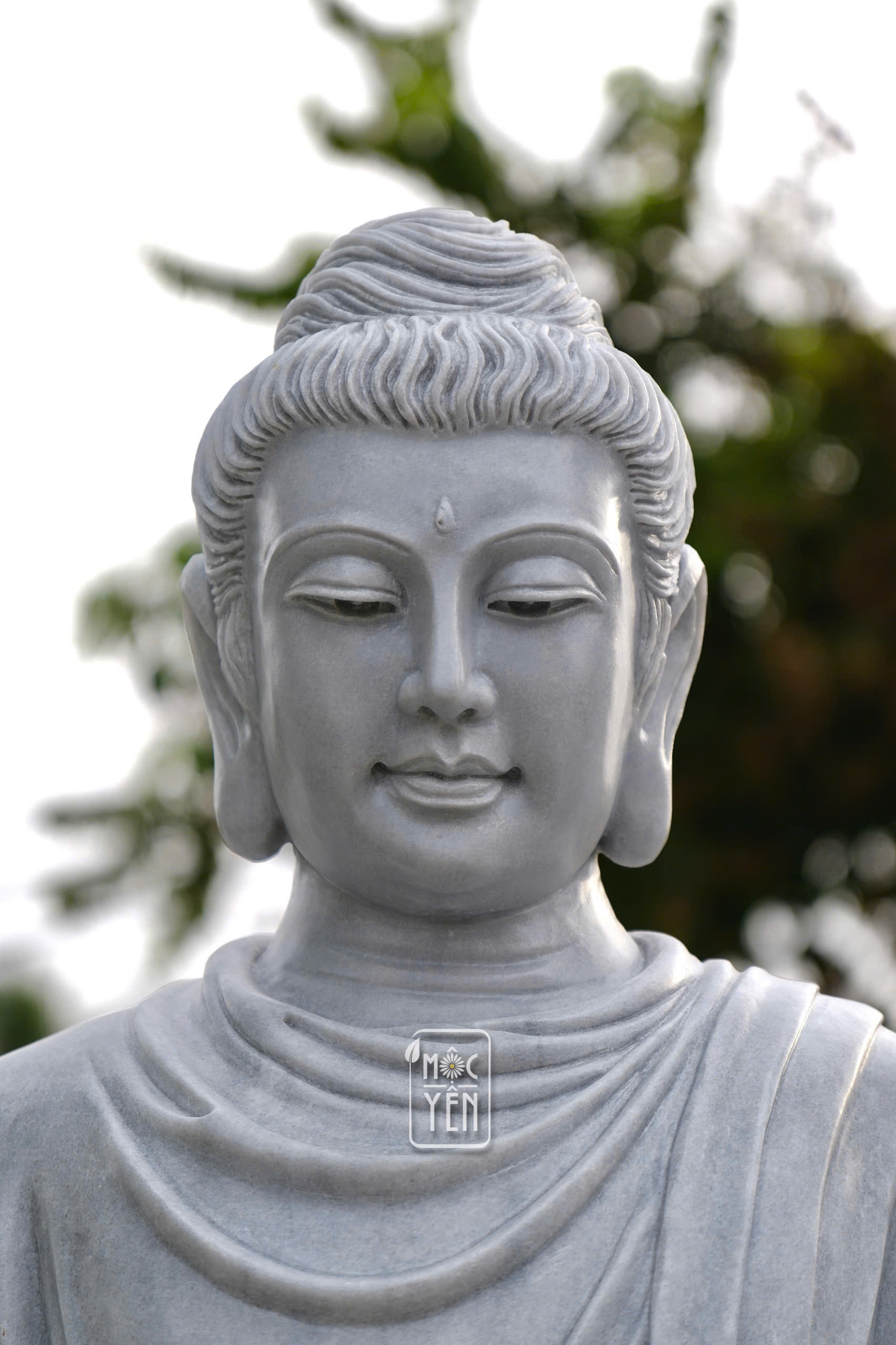 Khác với các chất liệu thông thường, đá xám nguyên khối được Mộc Yên lựa chọn kỹ lưỡng để tạo nên tác phẩm Tượng thật sắc nét. Đá xám có ưu điểm: